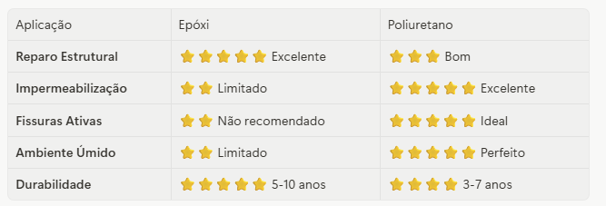 As resinas de epóxi e poliuretano proporcionam reparos permanentes com vida útil que pode superar 10 anos quando aplicadas corretamente. Isso significa economia a longo prazo, eliminando a necessidade de reparos recorrentes.
